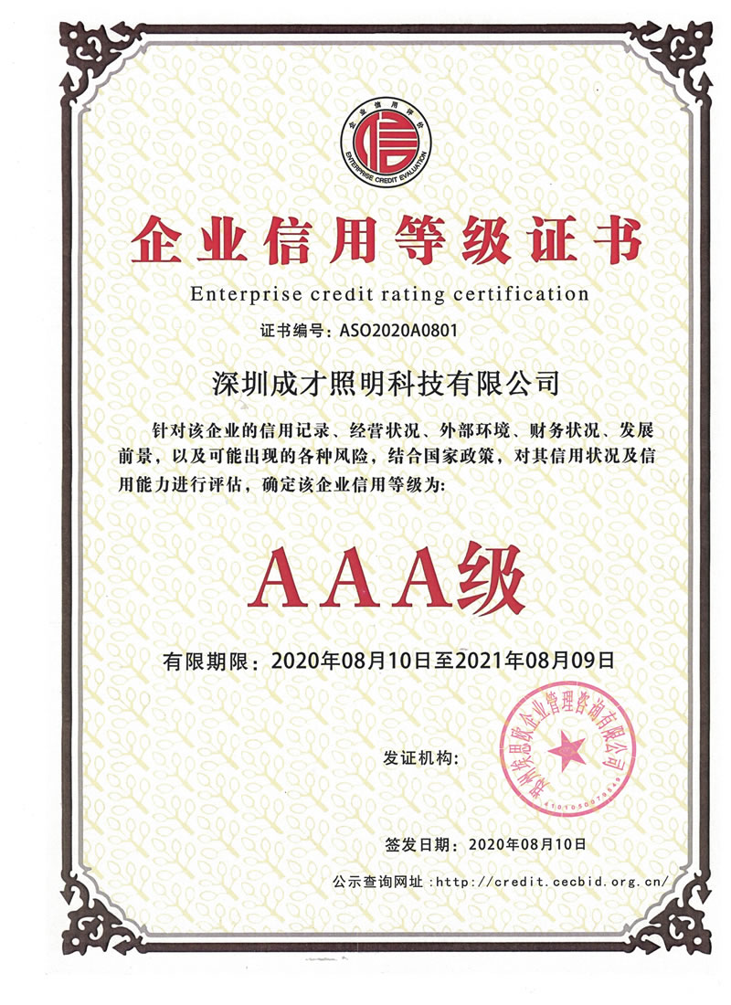 企業(yè)信用等級3A認(rèn)證